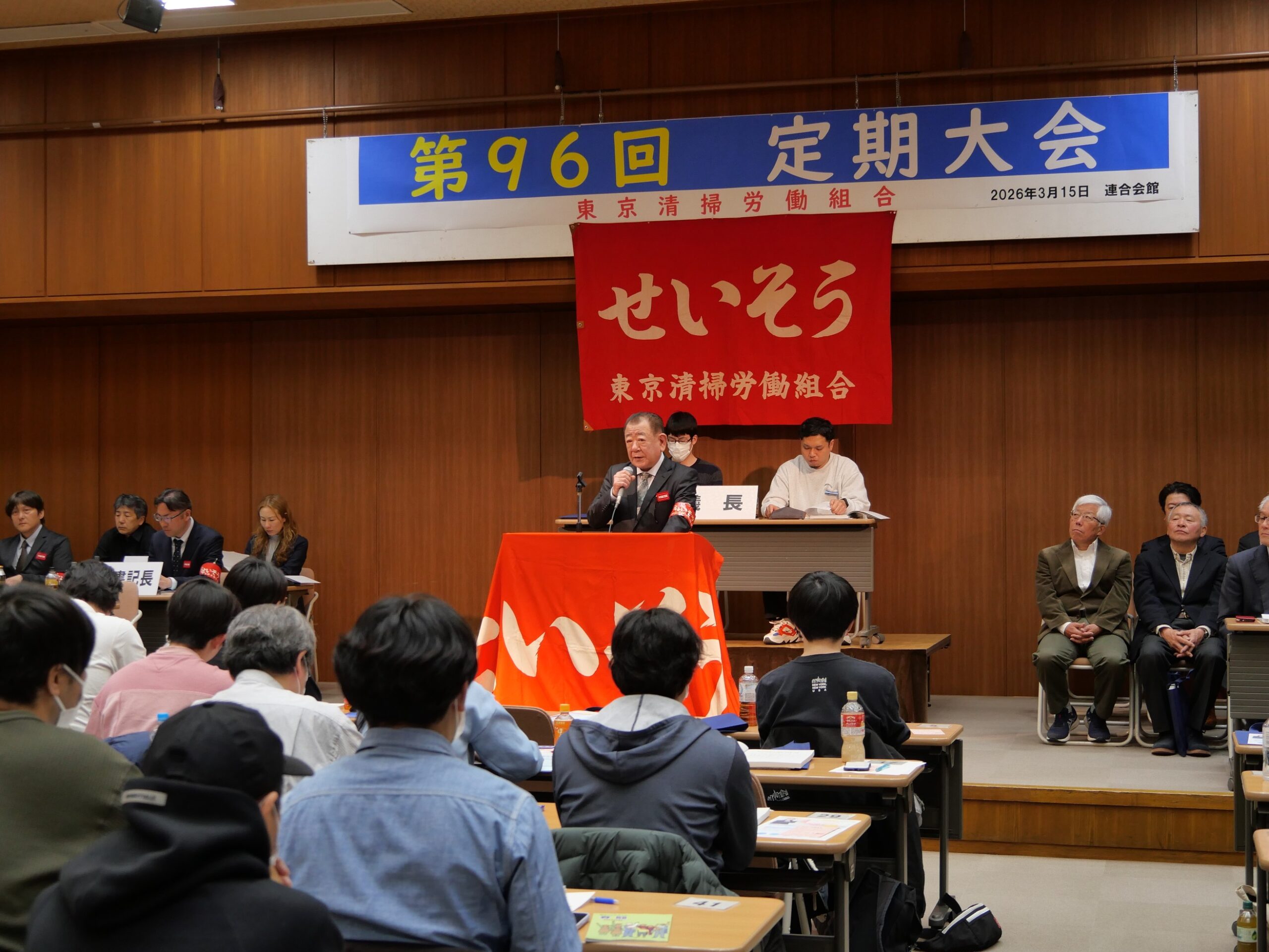 わが組合は12月7日に地方自治研究集会を開催しました。まずは東京二十三区清掃一部事務組合の武藏野総務企画担当部長より、23区の清掃事業の歴史、また現在の課題について講演していただきました。昼休憩を挟み、各地連・一組総支部が行った自治研活動について報告を受けました。講演の2つ目は横浜清掃労働組合の松本委員長より、横浜市におけるごみ減量に向けた啓発活動の取り組み、そこから生まれた職員同士の連携などについてお話をいただきました。1日を通してそれぞれの立場から清掃事業に関わる講演・報告を受け、様々な課題とともに今後の展望が見えた自治研集会となりました。引き続き本部・地連・支部(各区)が自治研活動を推進し、「住民との協働」による清掃事業の確立を目指していきましょう。